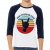 features raglan 3/4 sleeves and a modern fit that is perfect for a day
